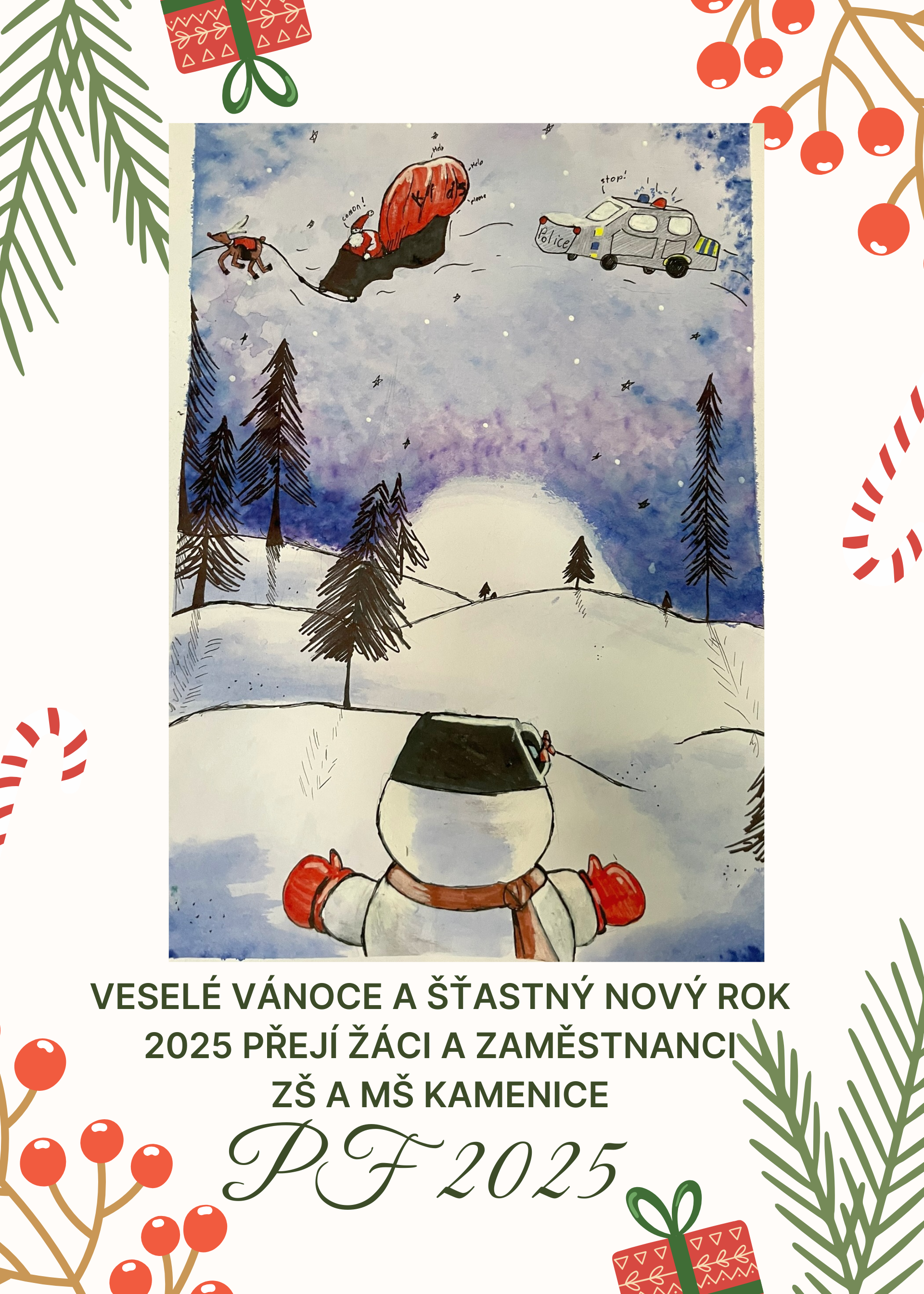 Veselé Vánoce a šťastný nový rok 2025 přejí žáci a zaměstnanci ZŠ a MŠ Kamenice.